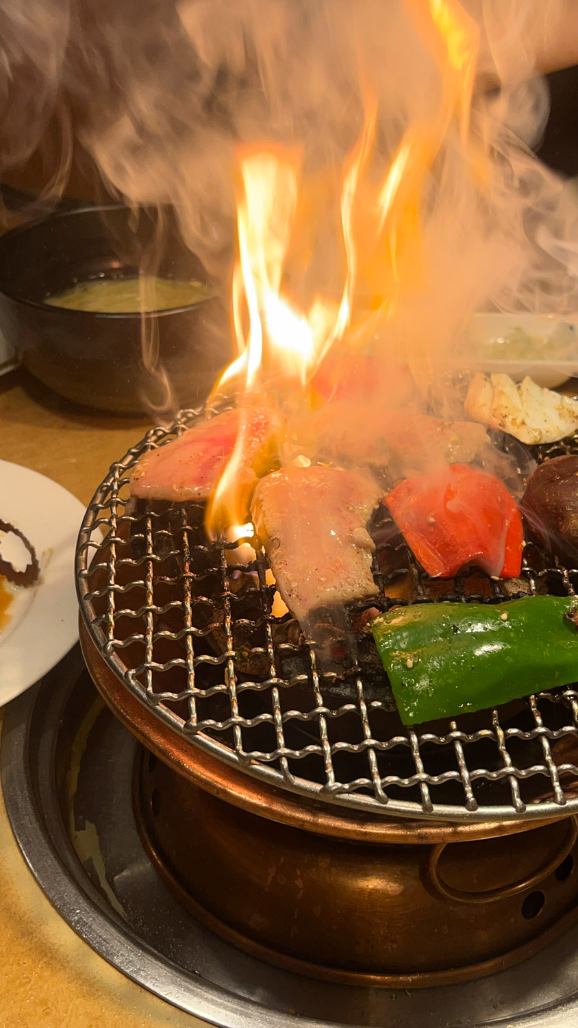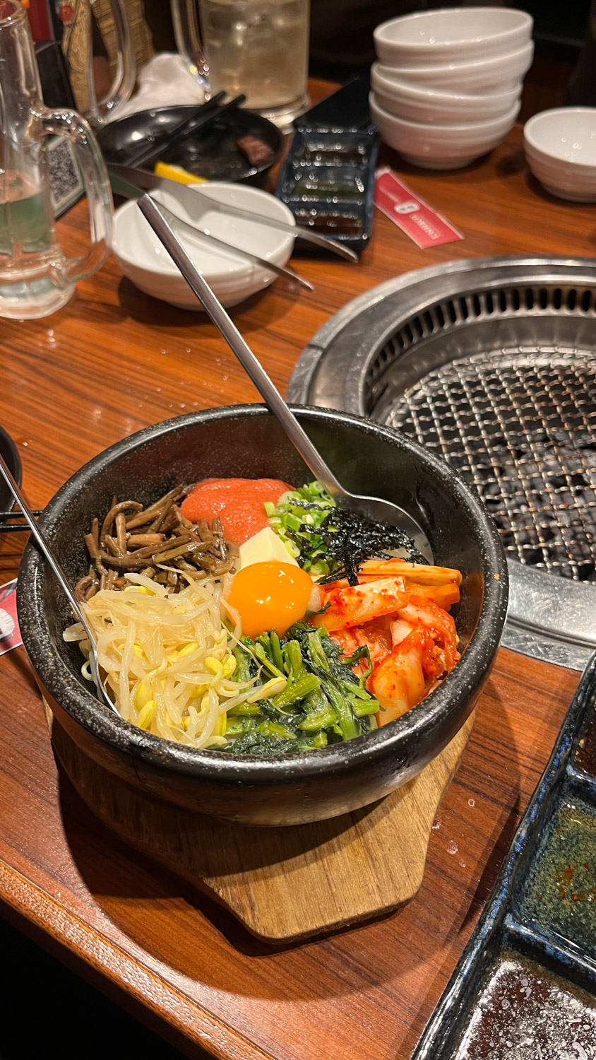 A highlight of the trip was TeamLab Borderless. It deserves its own post, but for now, I’ll just say it was an experience that pulled us into another world. Every room was different, and I could have stayed for hours. Food played a big part, too. We had an omakase dinner that I’ll write about later, but another favourite was a small monjayaki spot. It’s like a messier version of okonomiyaki. We cooked at the table, and as always, I scalded the hell out of my mouth, but it was worth it.