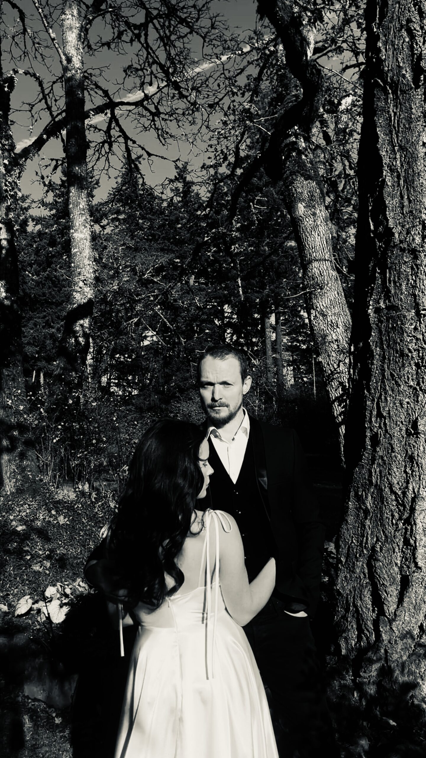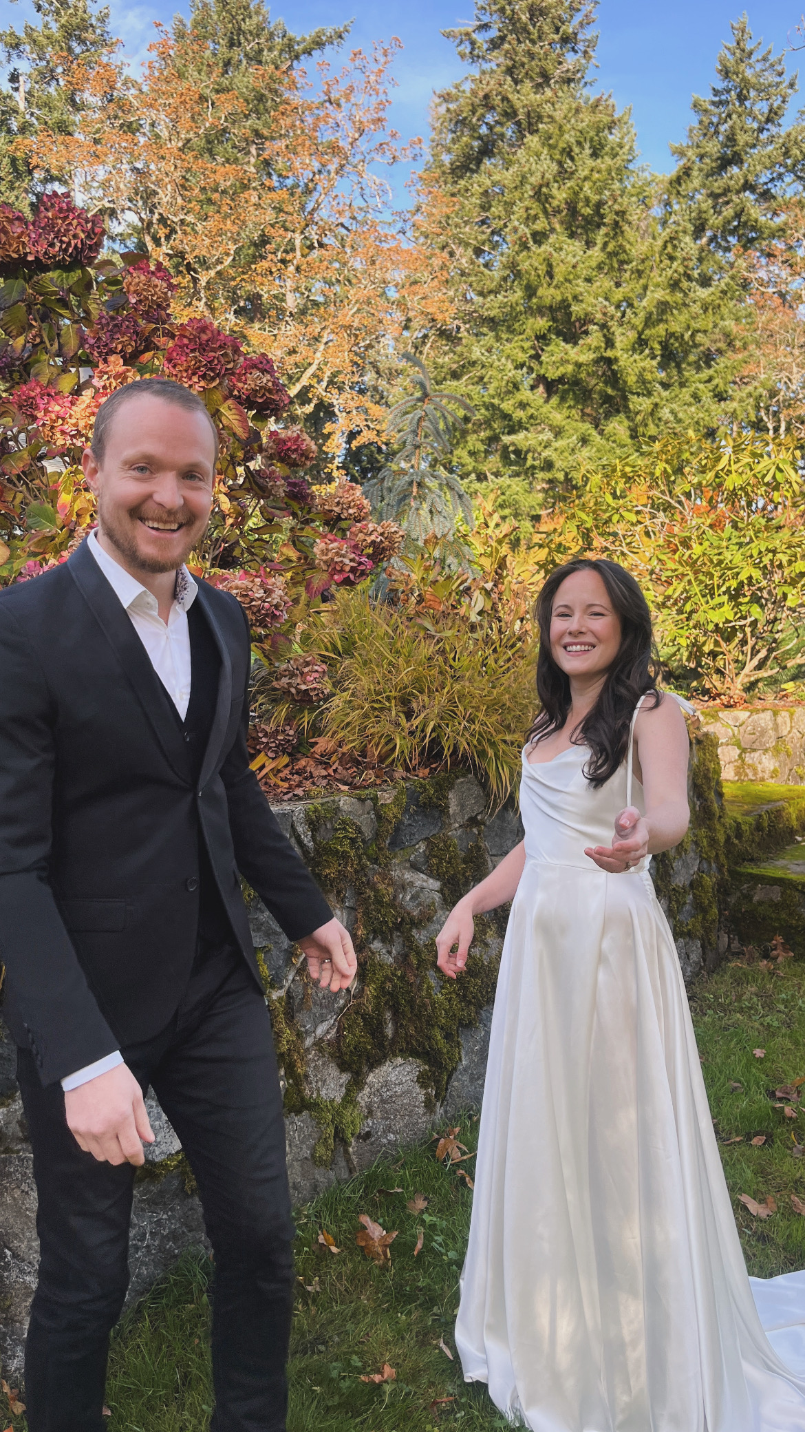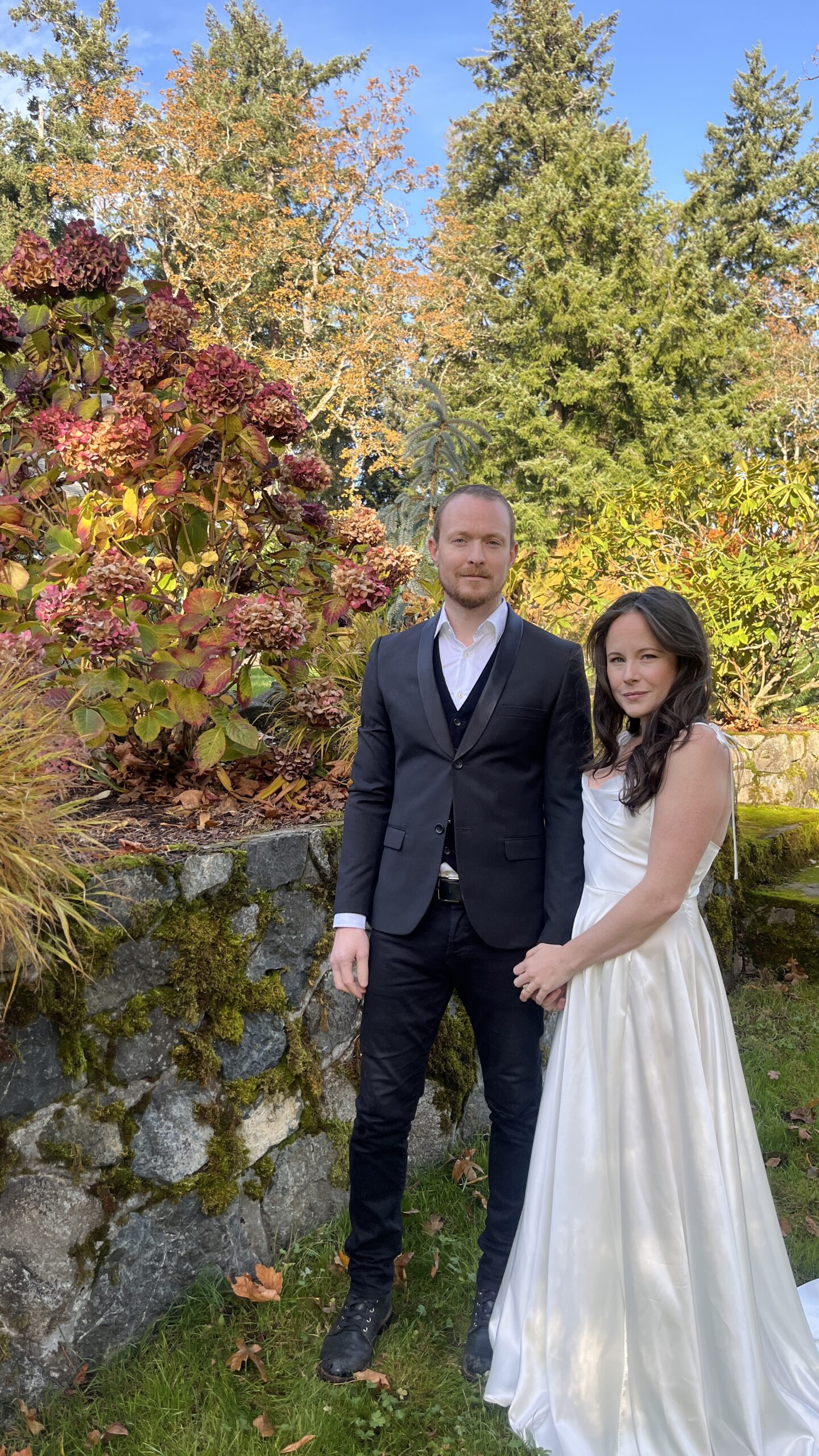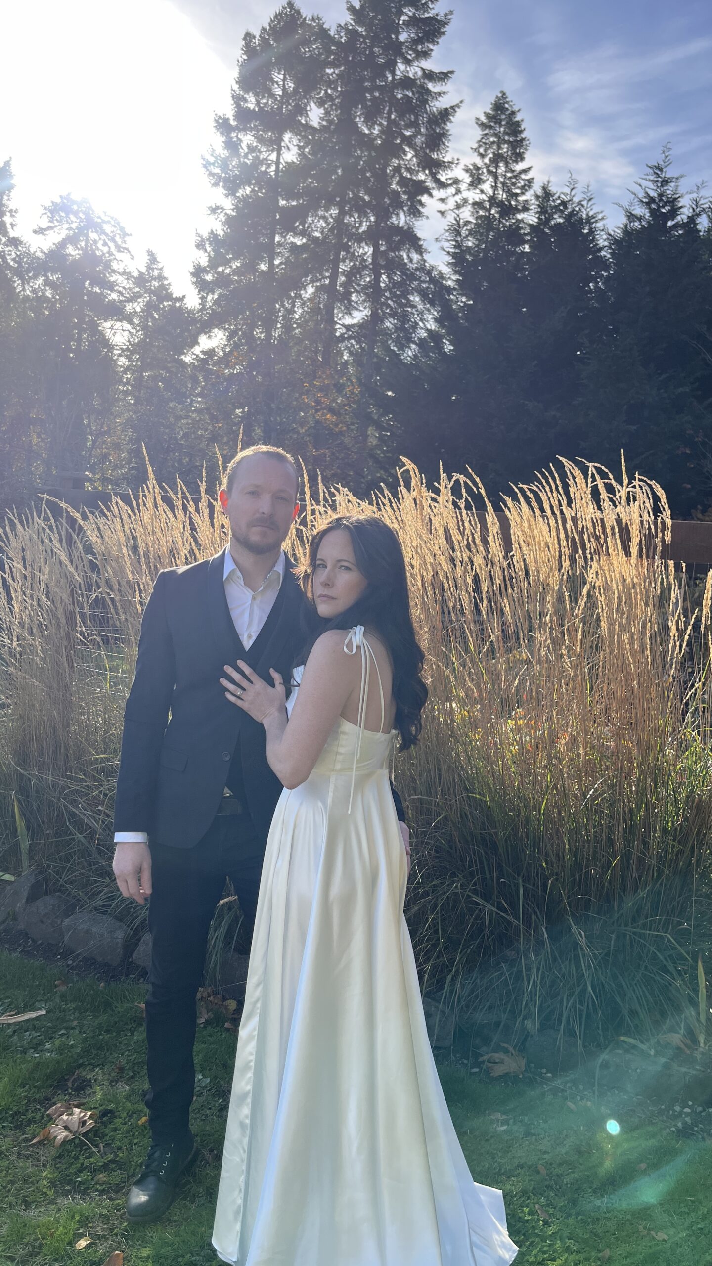 We certainly won’t be making this a habit, but we wanted some more wedding photos to choose from, so we donned our wedding attire and set up the tripod. These were taken on my phone, so granted, they aren’t professional quality; however, we both felt far more comfortable in front of the lens when it was just the two of us. We have never done a “photoshoot,” so all of our photos are in the moment or taken quickly while on vacation. They are all the same in different locations, and we wanted something a little different. I’m extremely happy to have these photos to look back on when we’re old and grey. I printed my favourites, so this also counts the the paper gift to each other.